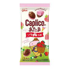 Chocolat au lait aérien et chocolat aromatisé à la fraise dans d'adorables bouchées, les CAPLICO NO ATAMA ICHIGO ATSUME fondantes sont présentées pour grignoter tout au long de la journée !