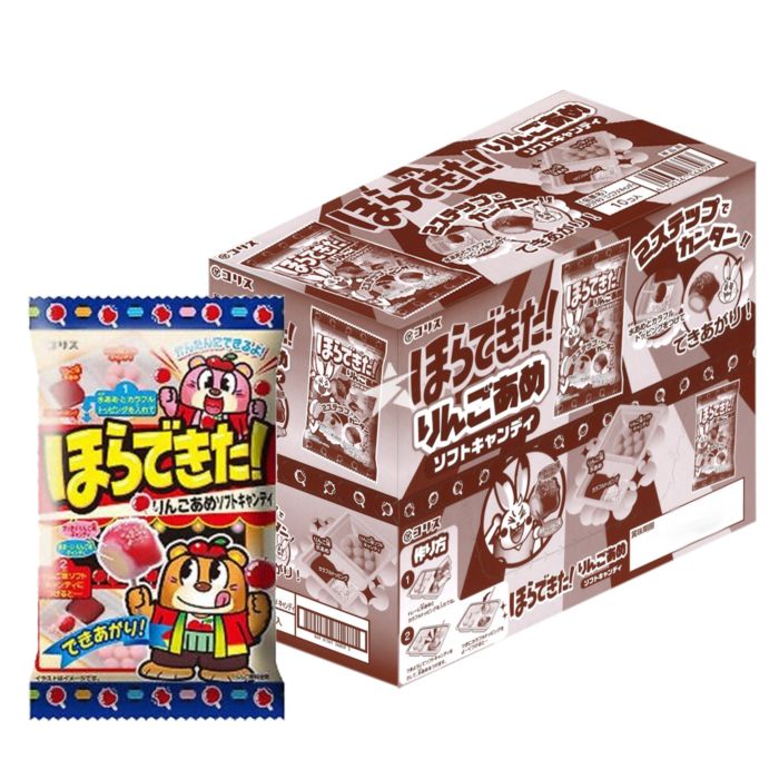 FR: [bonbons aux pommes]: sucre, sirop d'amidon, huile de palme, maltose hydrogéné, gélatine (E441), amidon, sorbitol (E420), acidulants, émulsifiant, épaississant [pullulane (E1204)], arôme, colorant [anthocyane (E163), caroténoïde (E160a)]. [sirop d'amidon arôme pomme]: sirop d'amidon, acidulants, colorant anthocyanique (E163), arôme. [garniture]: sucre, amidon, amidon adhésif [gomme arabique (E414)], colorant [anthocyane (E163), gardénia, caroténoïde (E160a)], acidulant. NL: [appelsnoep]: suiker, zetmeelsiroop, palmolie, gehydrogeneerde maltose, gelatine (E441), zetmeel, sorbitol (E420), zuurteregelaars, emulgator, verdikkingsmiddel [pullulane (E1204)], aroma, kleurstof [ anthocyaan (E163) , carotenoïde (E160a)]. [zetmeelsiroop met appelsmaak]: zetmeelsiroop, zuurteregelaars, kleurstof anthocyaan (E163), aroma. [garnering]: suiker, zetmeel, kleefzetmeel [Arabische gom (E414)], kleurstof [anthocyaan (E163), gardenia, carotenoïde (E160a)], voedingszuur.